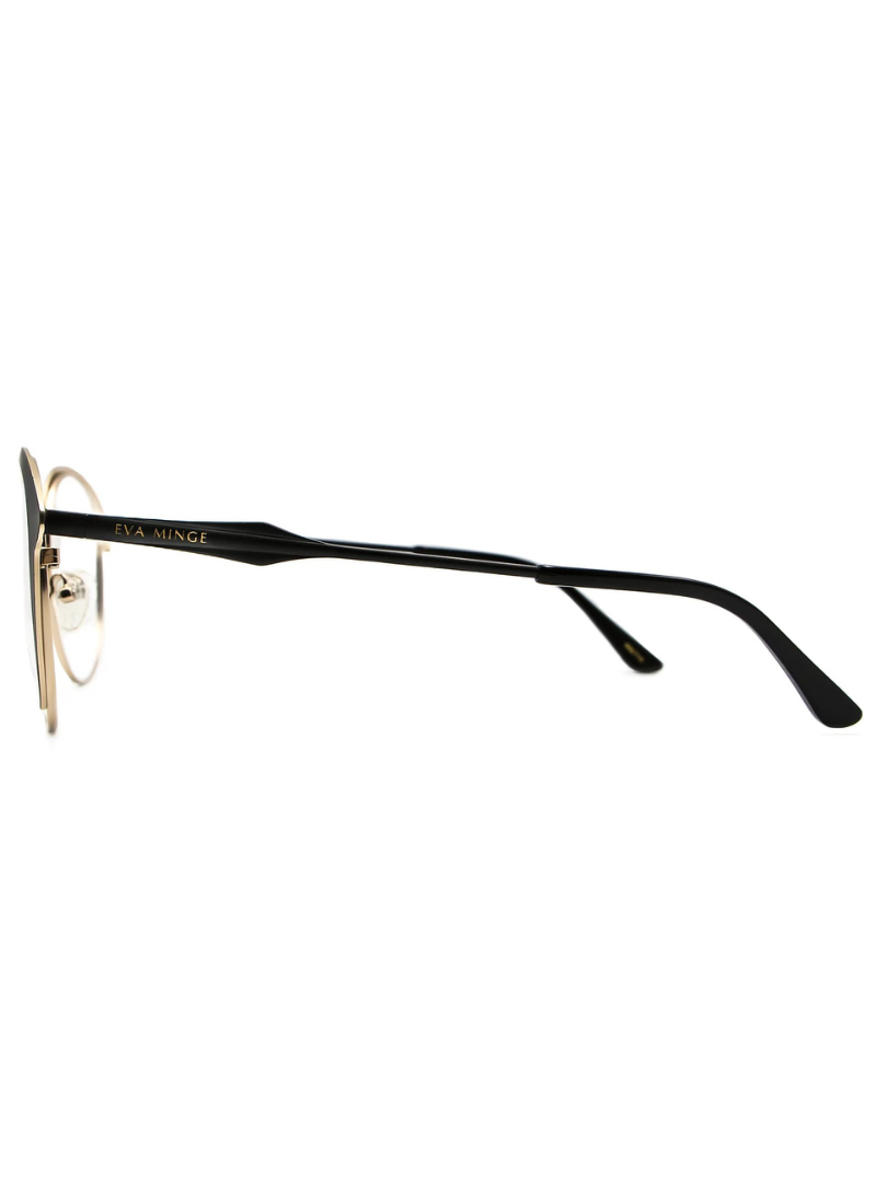 Okulary korekcyjne EVA MINGE EMP 1028 C1 w eleganckim połączeniu czerni i złota to propozycja dla kobiet, które cenią sobie ponadczasowy styl z odrobiną luksusu. Wyrafinowane detale oraz perfekcyjnie dobrane kolory sprawiają, że ten model doskonale komponuje się zarówno z formalnymi, jak i codziennymi stylizacjami, dodając im klasy i wyjątkowego charakteru.Cechy produktu: