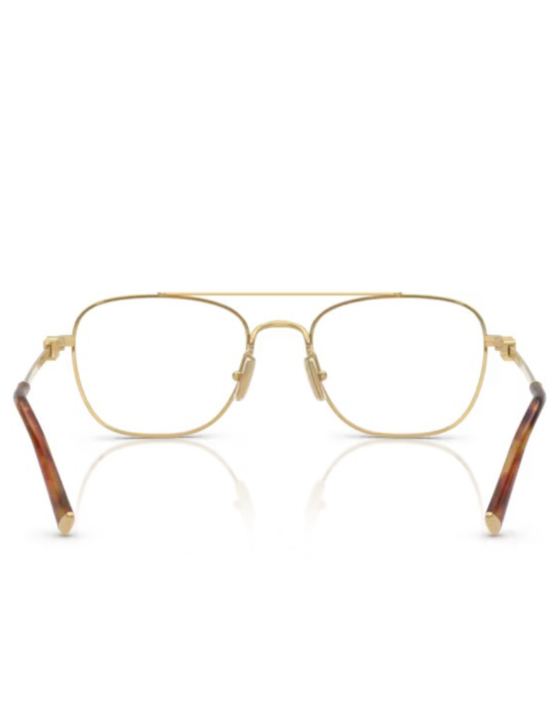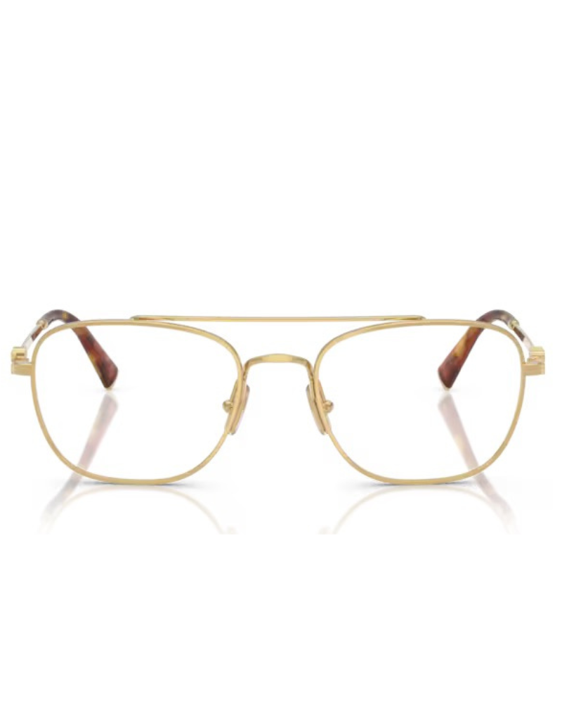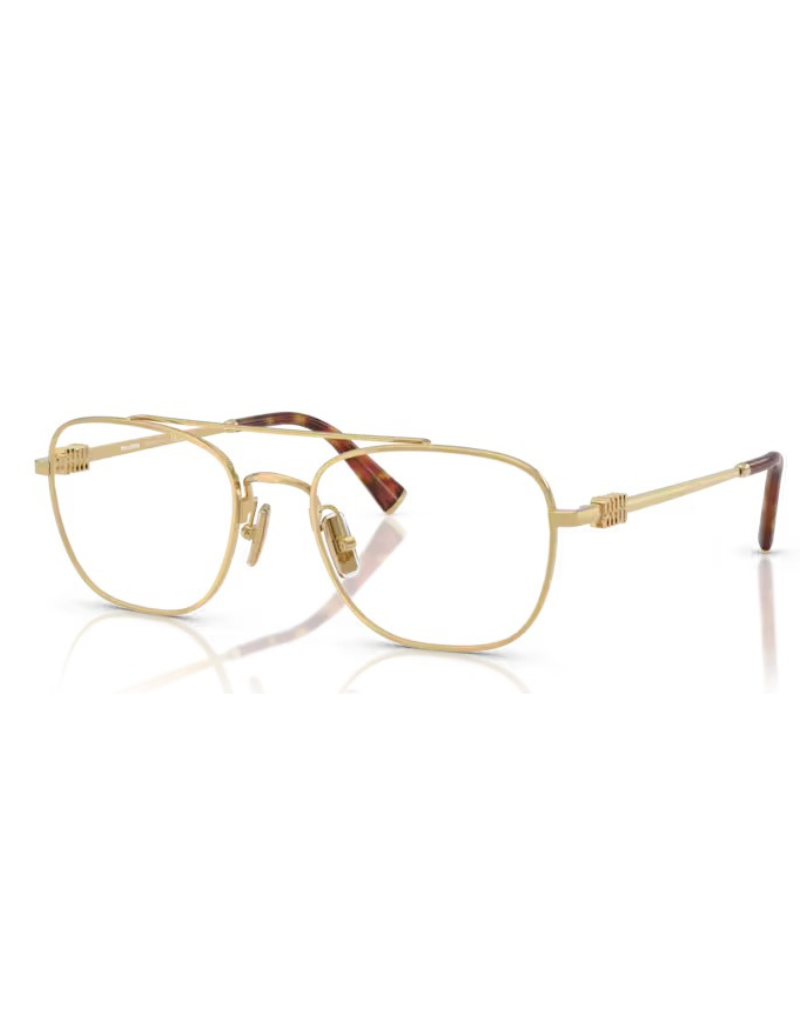 Model 51WV od Miu Miu to metalowa oprawa korekcyjna o kwadratowym kształcie, która emanuje luksusem i lekkością. Polerowane złoto nadaje całości elegancji i subtelnego blasku – jak biżuteria, która podkreśla spojrzenie.