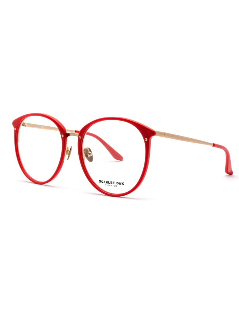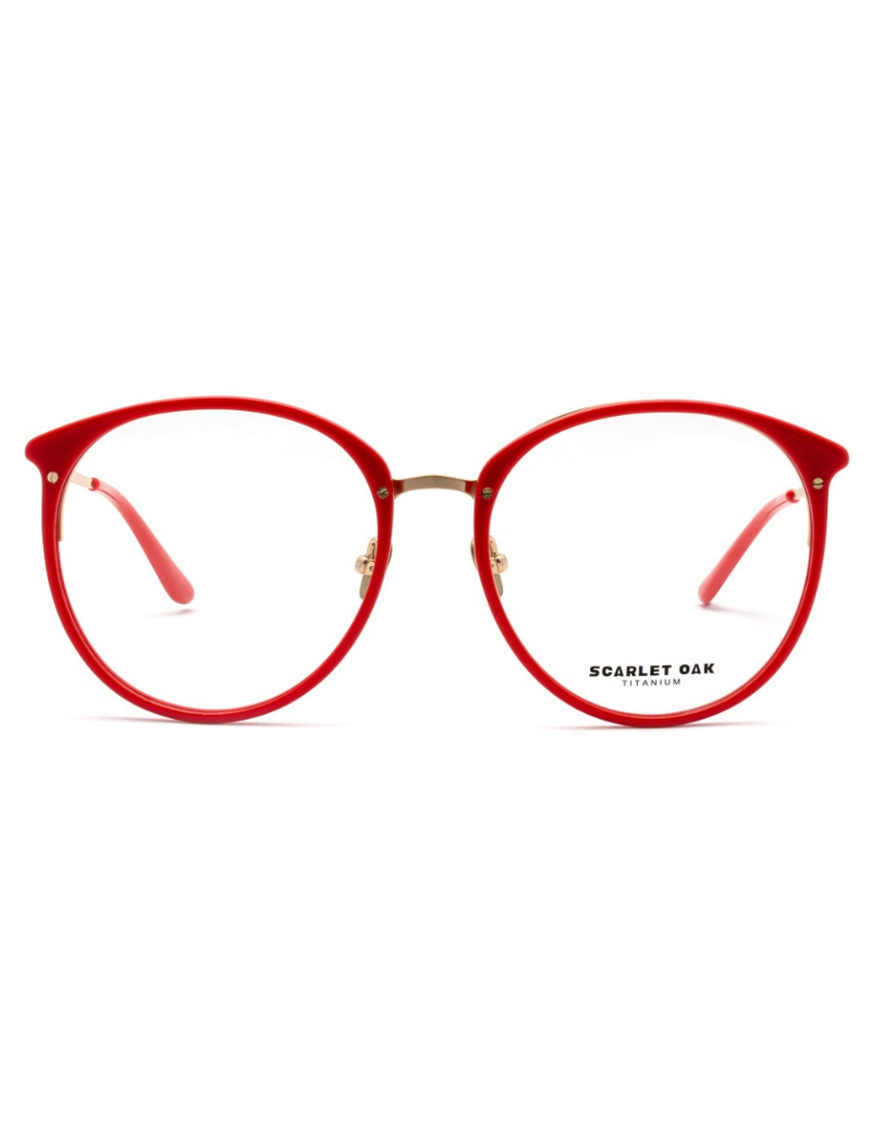 Model 08 Flora od Scarlet Oak to oprawa, która łączy artystyczny charakter z ponadczasową lekkością tytanu. Jej okrągły, oversize’owy kształt w intensywnie czerwonym kolorze robi mocne pierwsze wrażenie – odważne, ale jednocześnie pełne elegancji.