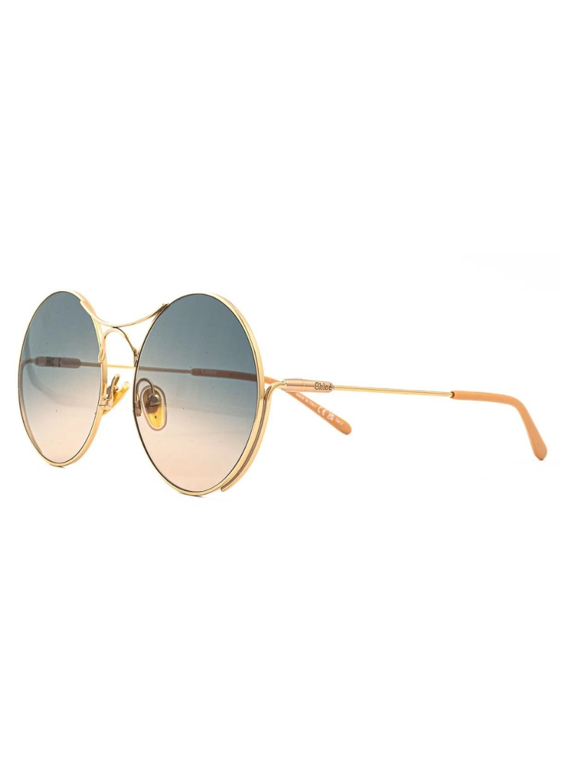 Luksusowe okulary przeciwsłoneczne Chloe CH0166S to kwintesencja paryskiej elegancji i nowoczesnego stylu. Charakterystyczne okrągłe oprawki wykonane z wysokiej jakości metalu w złotym wykończeniu nadają im ponadczasowy, a zarazem współczesny charakter.