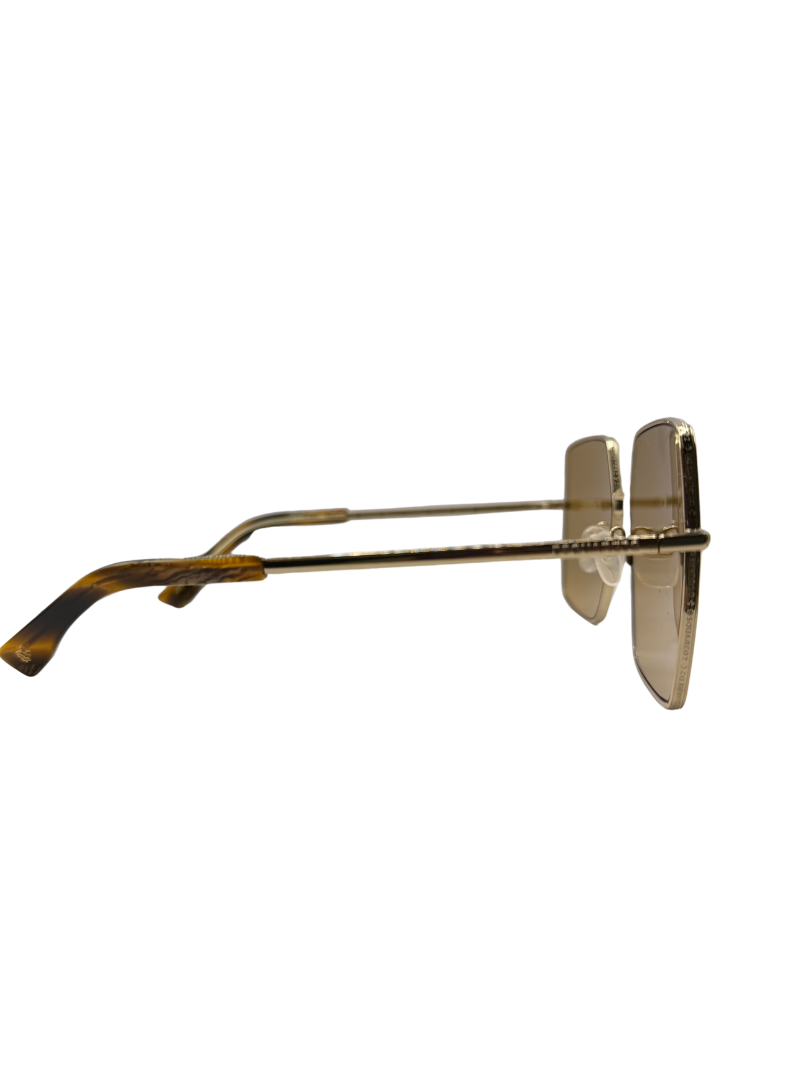 Okulary te cechuje subtelna, metalowa rama w złotym kolorze, która zachwyca swoją lekkością i trwałością. Smukła konstrukcja oprawek sprawia, że model ten jest jednocześnie delikatny i wyrazisty. Pełne soczewki zapewniają doskonałą ochronę przed promieniowaniem UV, jednocześnie dodając całości elegancji. Złoty odcień ramki idealnie komponuje się z każdą stylizacją, dodając jej klasy i nowoczesności.