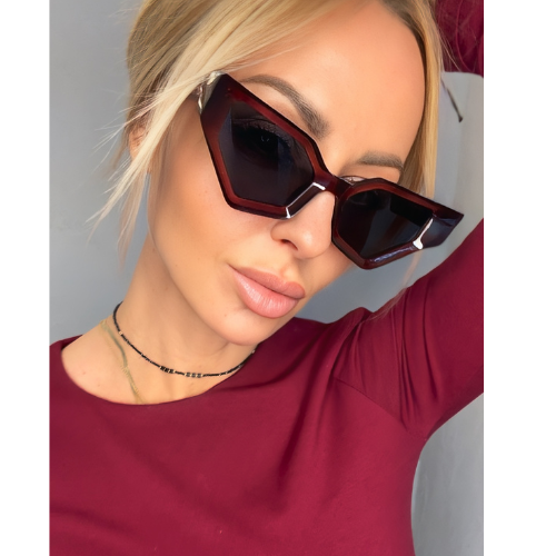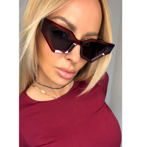 Okulary przeciwsłoneczne Leziff – Geometryczny burgund dla kobiety z charakterem